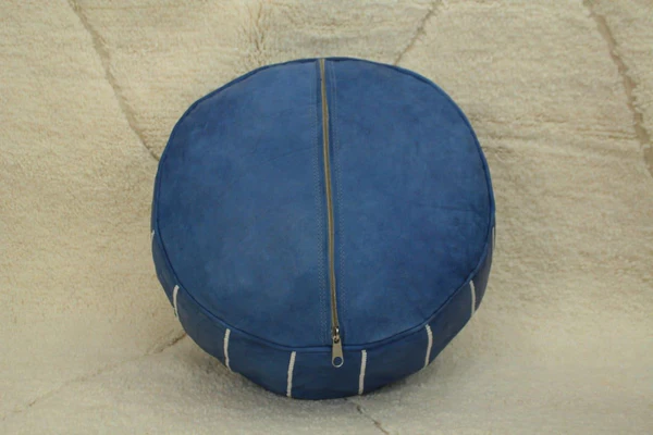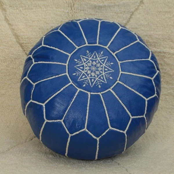 Natural Bleu Moroccan Leather Pouf – Handcrafted & Floor Cushion