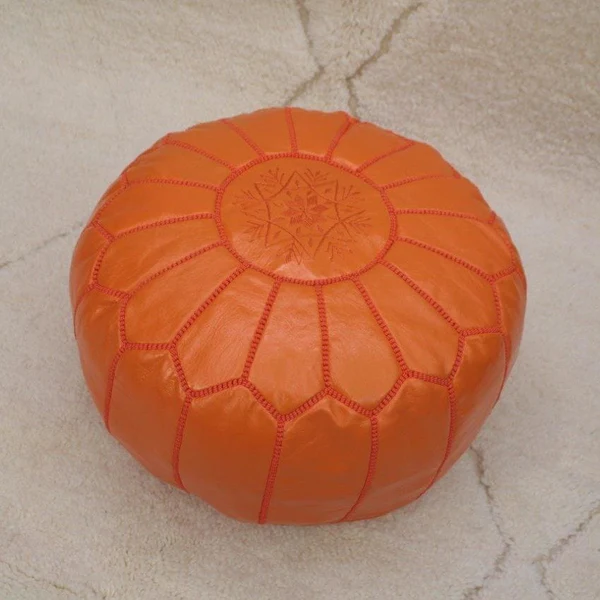 Natural Orange Moroccan Leather Pouf – Handcrafted & Floor Cushion