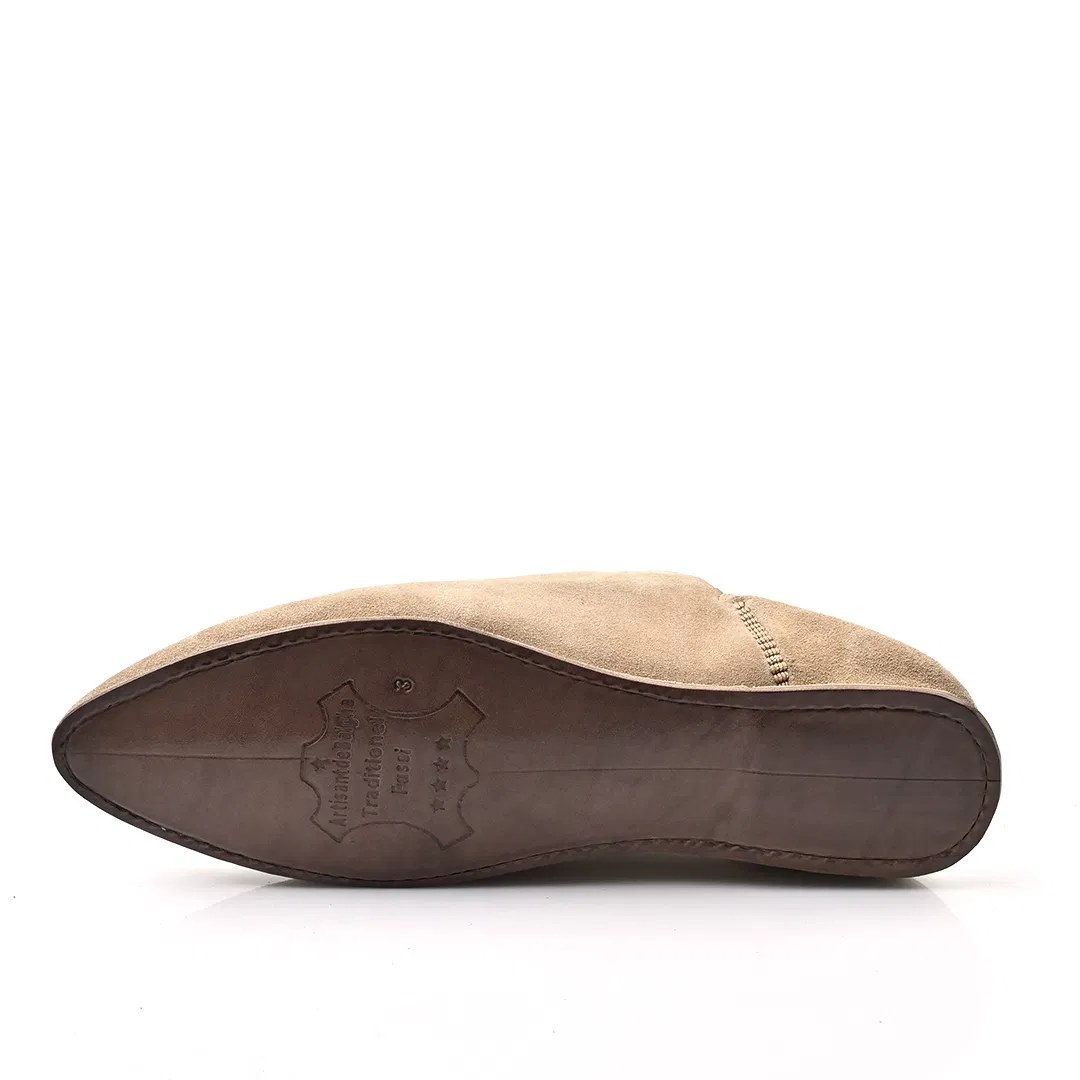The Luxe Beige Suede & Leather Babouche | Handmade in Morocco