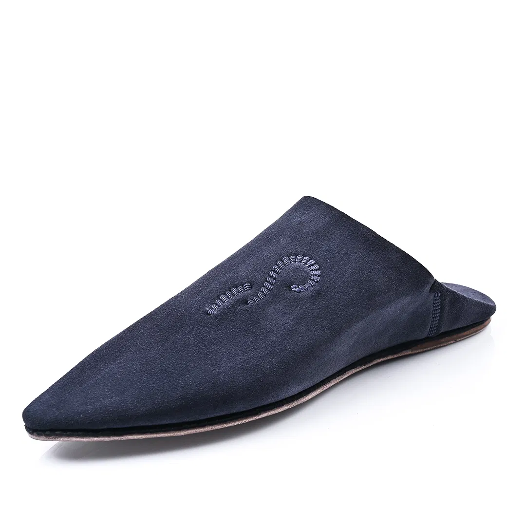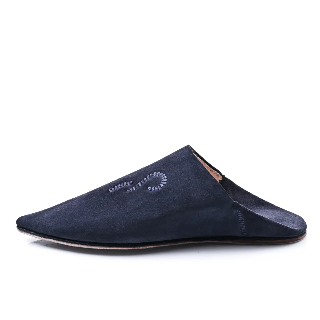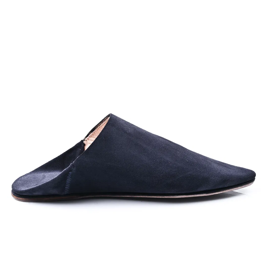 The Luxe Midnight blue Suede & Leather Babouche | Handmade in Morocco
