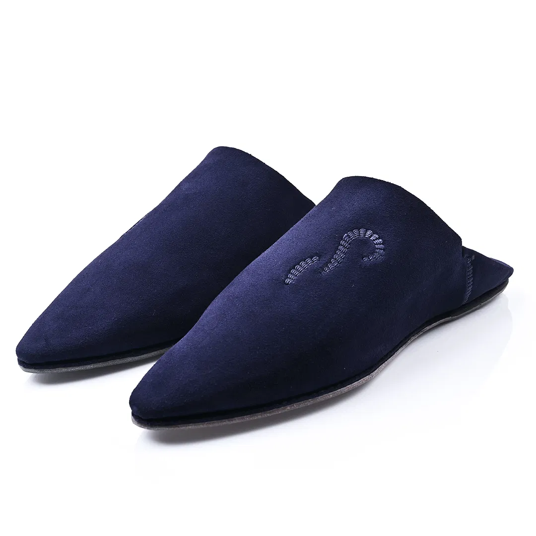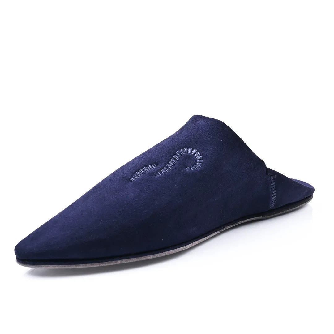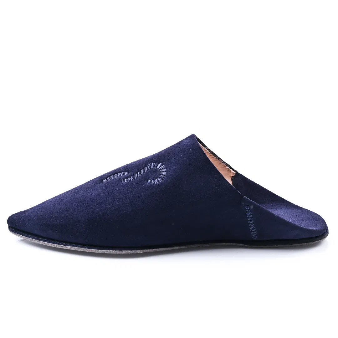 The Luxe Navy blue Suede & Leather Babouche | Handmade in Morocco