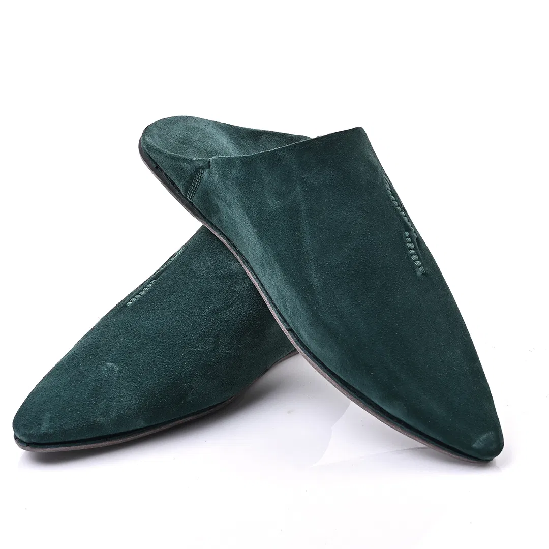 The Luxe Royal Green Suede & Leather Babouche | Handmade in Morocco