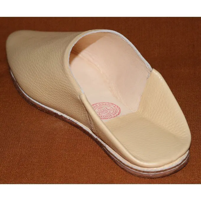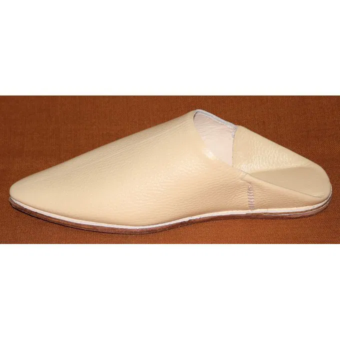 Handcrafted in Morocco from premium Beige leather, this pointed-toe babouche blends tradition with minimalist elegance. A timeless slip-on for refined comfort and artisan style