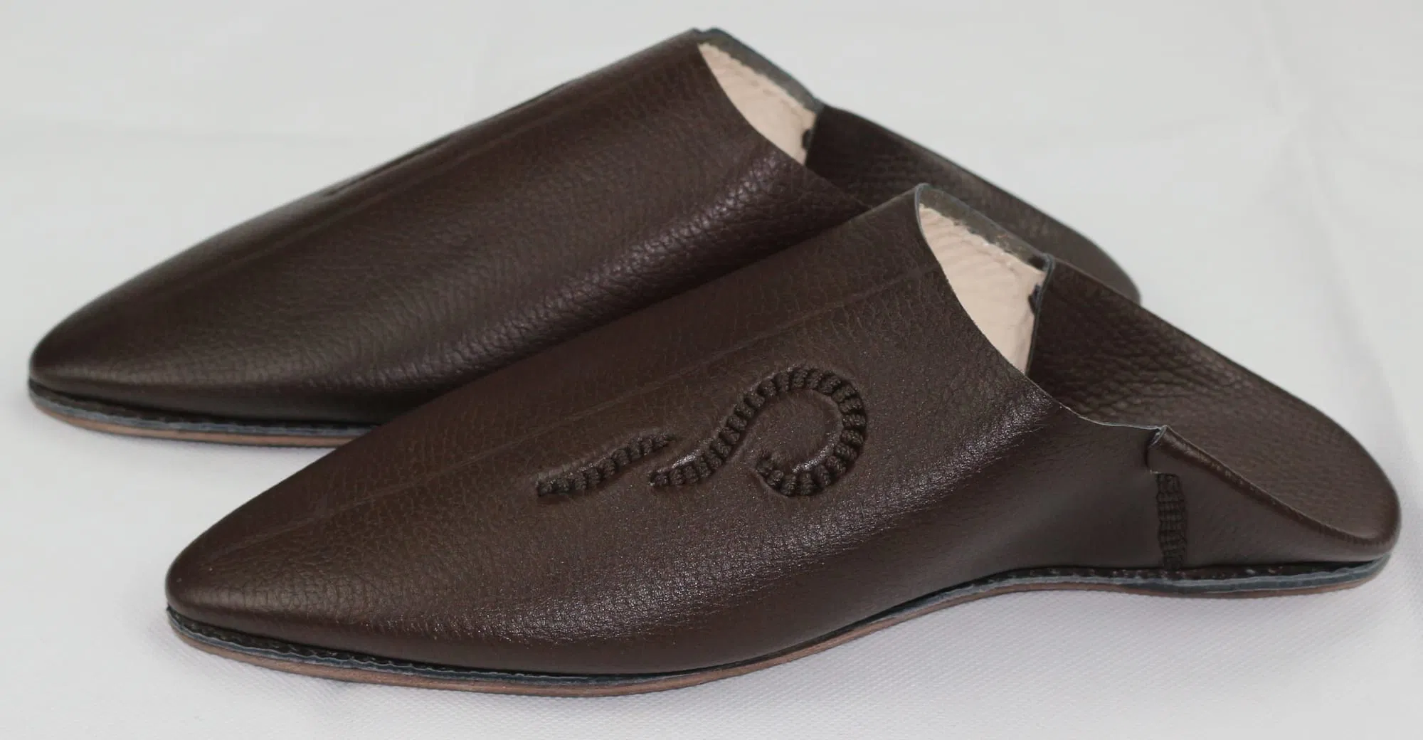 Step into timeless elegance with this Babooch slipper, crafted from rich, Brown leather that speaks of heritage and refinement. The pointed toe silhouette pays homage to traditional Moroccan design, while the minimalist structure offers effortless sophistication. Each pair is handmade using premium full-grain leather, showcasing a natural texture that enhances its artisanal character.