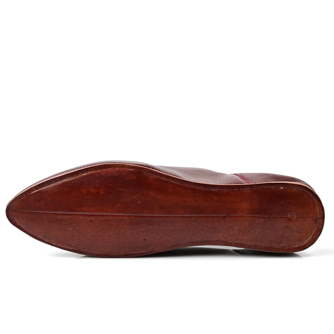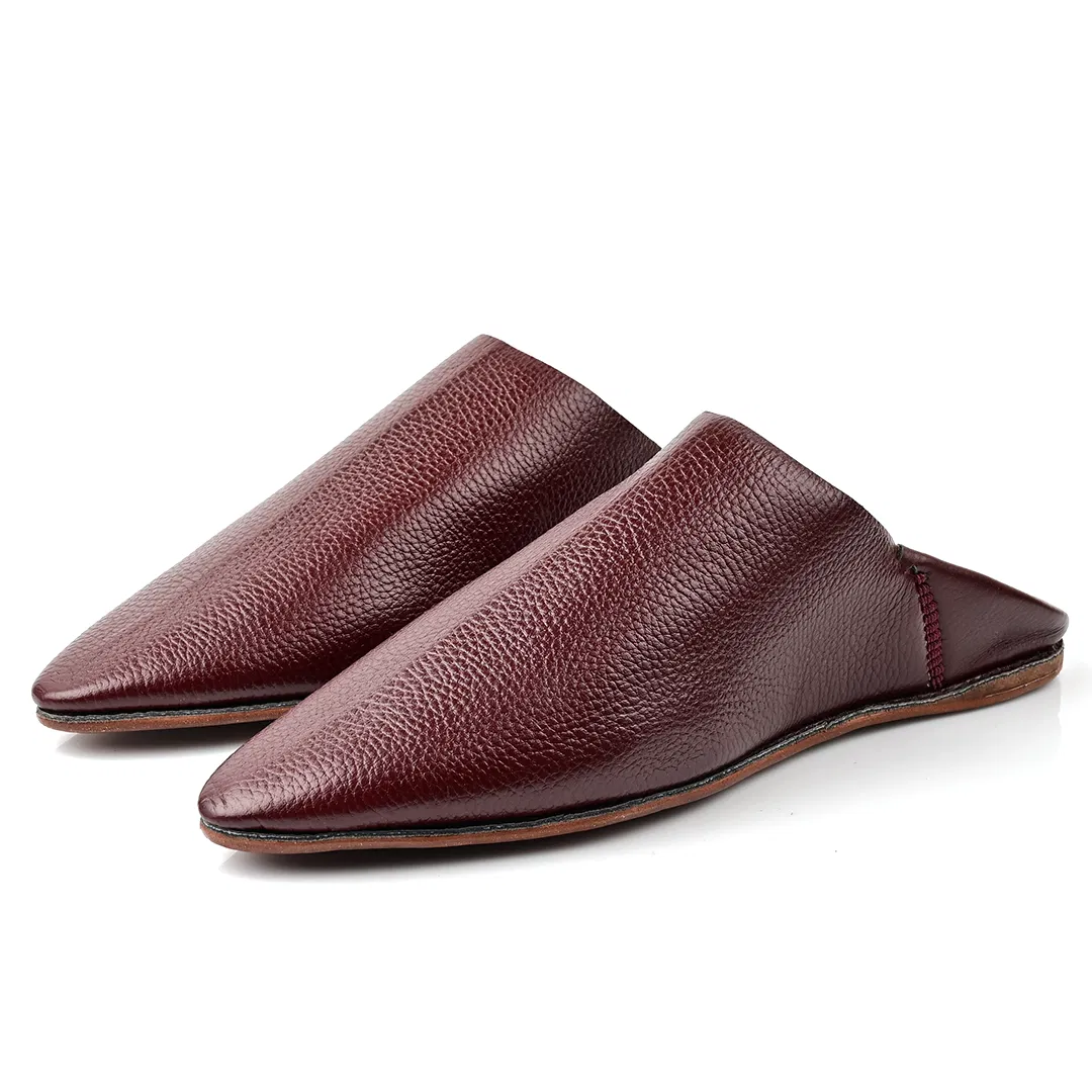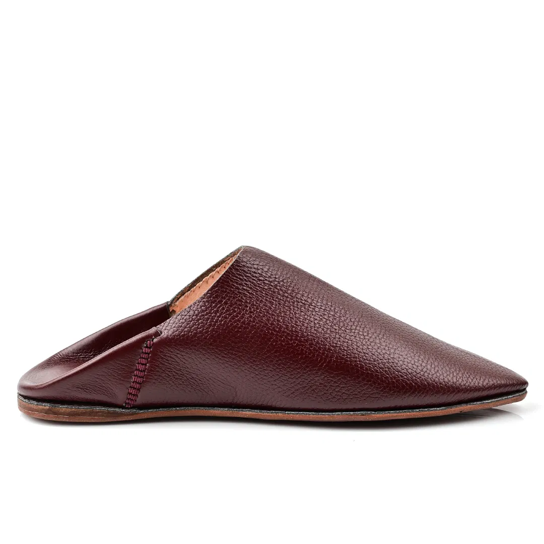 Step into timeless elegance with this Babooch slipper, crafted from rich Garnet leather that speaks of heritage and refinement. The pointed toe silhouette pays homage to traditional Moroccan design, while the minimalist structure offers effortless sophistication. Each pair is handmade using premium full-grain leather, showcasing a natural texture that enhances its artisanal character.
