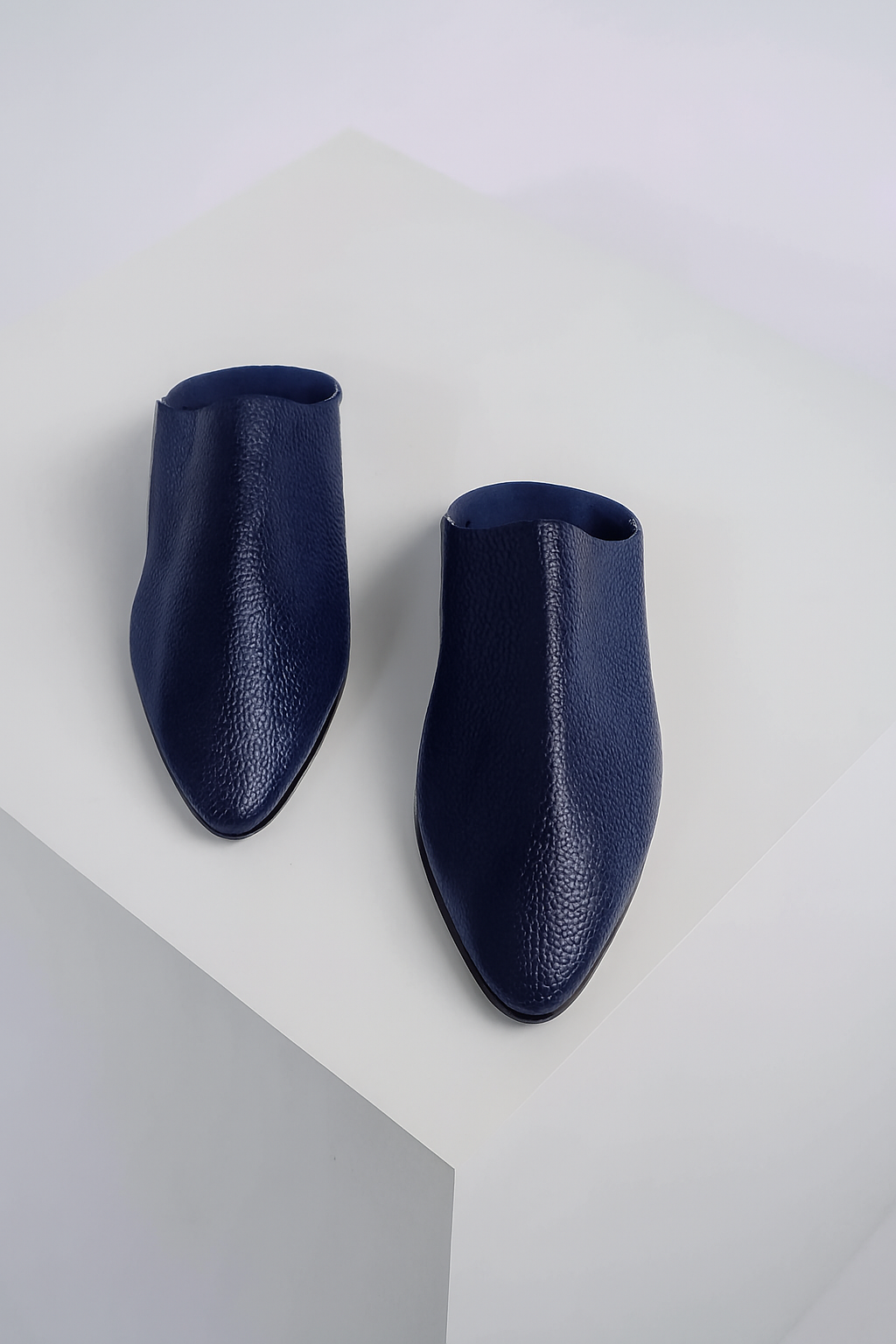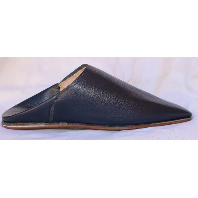 Handcrafted in Morocco from premium navy Bleu leather, this pointed-toe babouche blends tradition with minimalist elegance. A timeless slip-on for refined comfort and artisan style