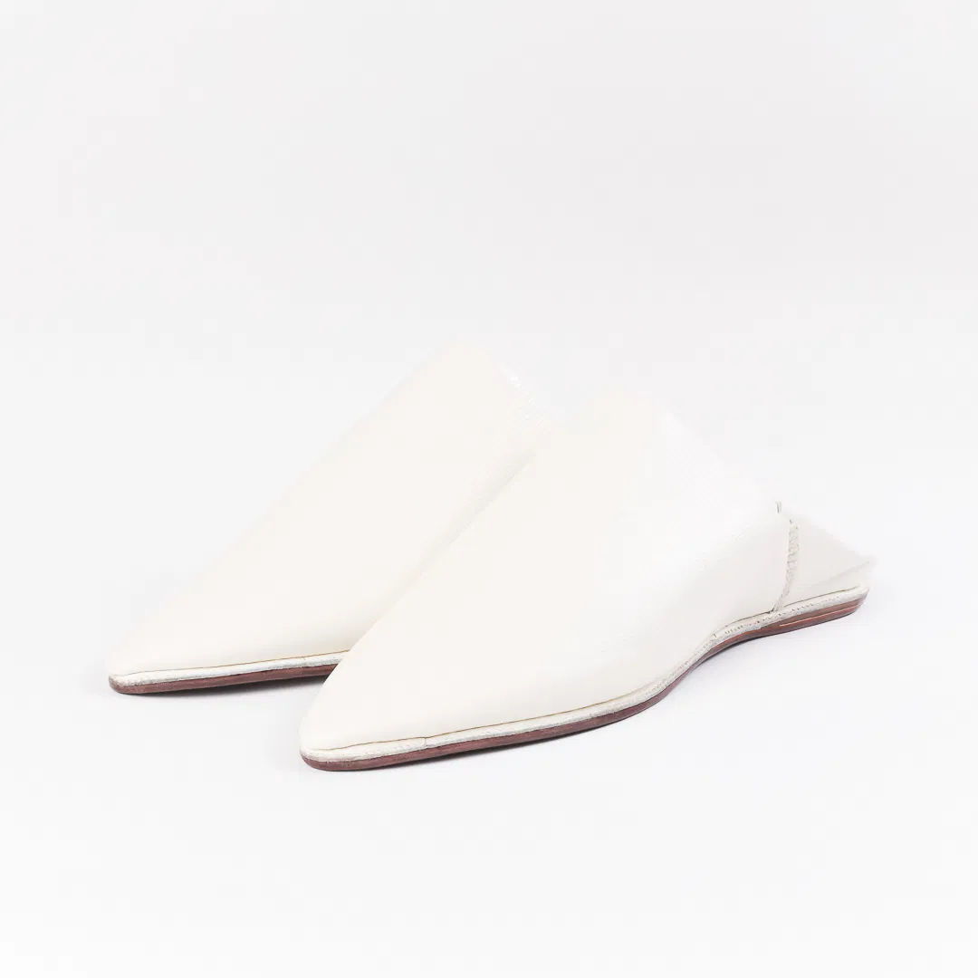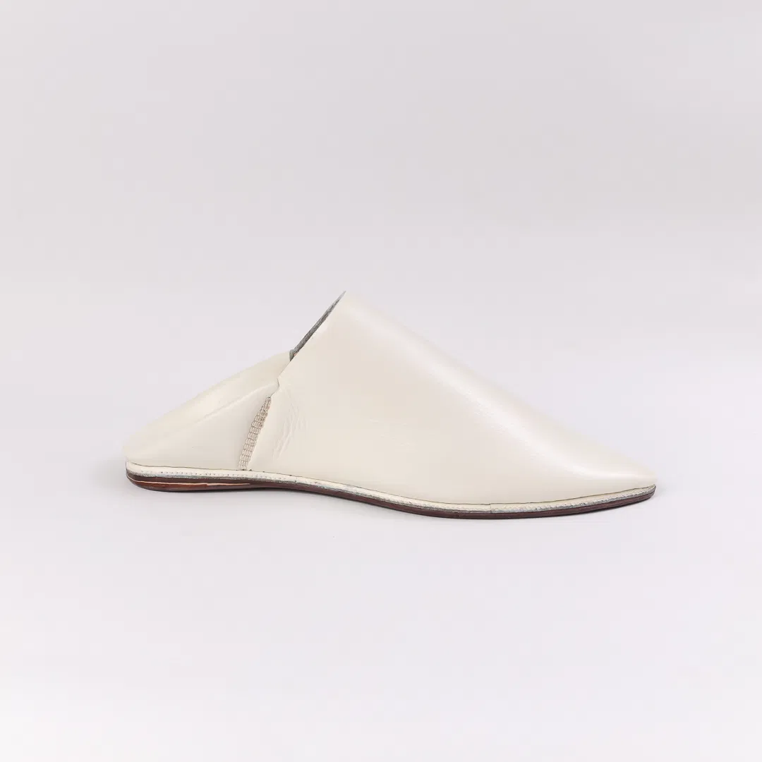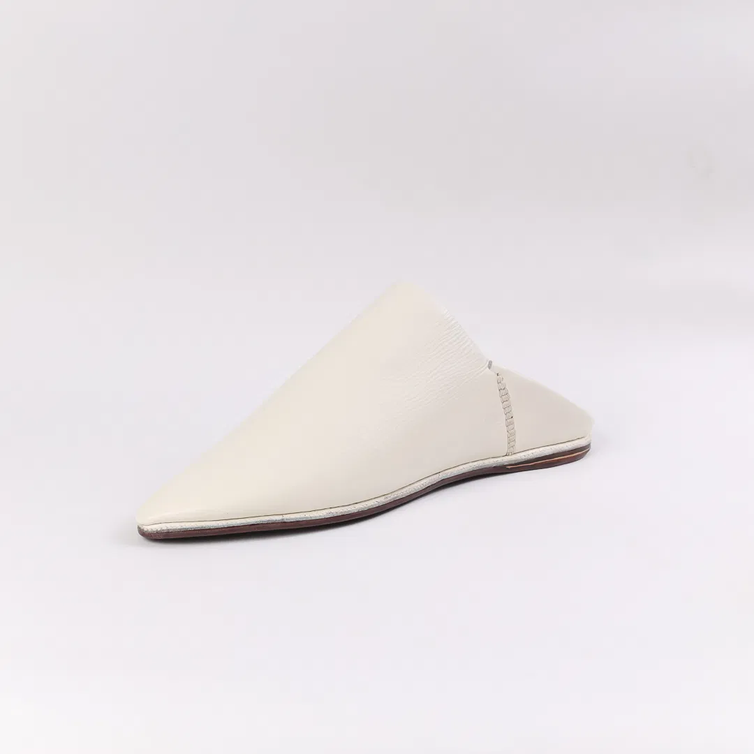 Handcrafted in Morocco from premium Wite leather, this pointed-toe babouche blends tradition with minimalist elegance. A timeless slip-on for refined comfort and artisan style