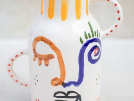 Ourika Visage Vase: Hand-Painted Abstract Face Ceramic