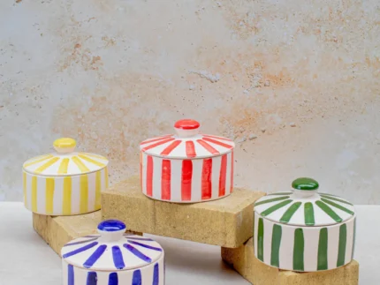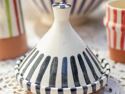 Ourika Striped Ceramic Lidded Pot – Handmade in High Atlas, Morocco