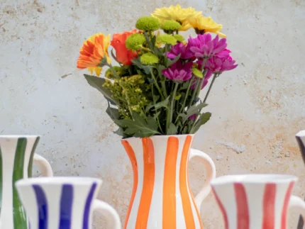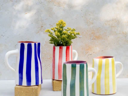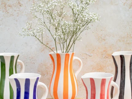 Ourika Handcrafted Striped Ceramic Jug – Moroccan Serving Pitcher