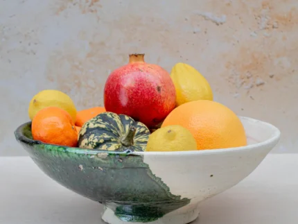 Tamegroute Half-Glazed Serving Bowl | Green & Raw Clay